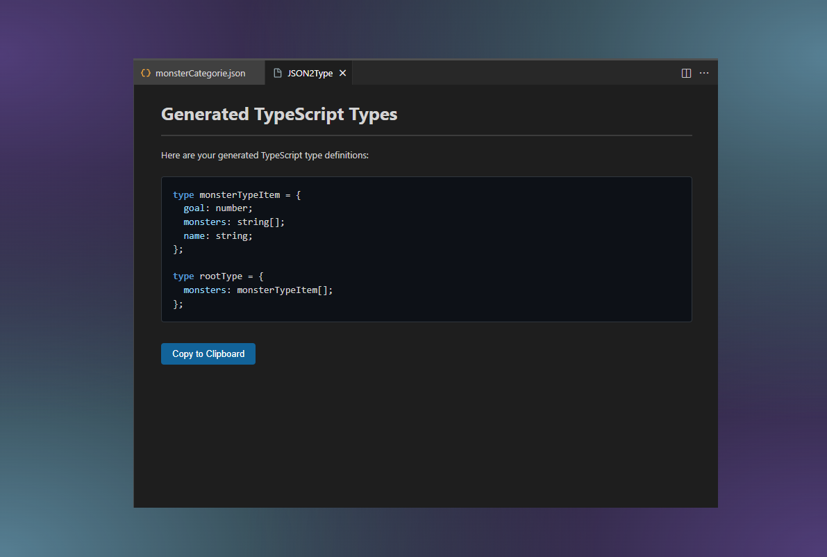 This project started as a simple utility I made for myself while working on a side project that involved a lot of JSON files. Manually converting large, nested objects into types was really repetitive and incredibly time consuming, so I wrote a CLI script to automate it. But I didn't stop there, eventually I figured, why not make this easier to use right on VS Code?